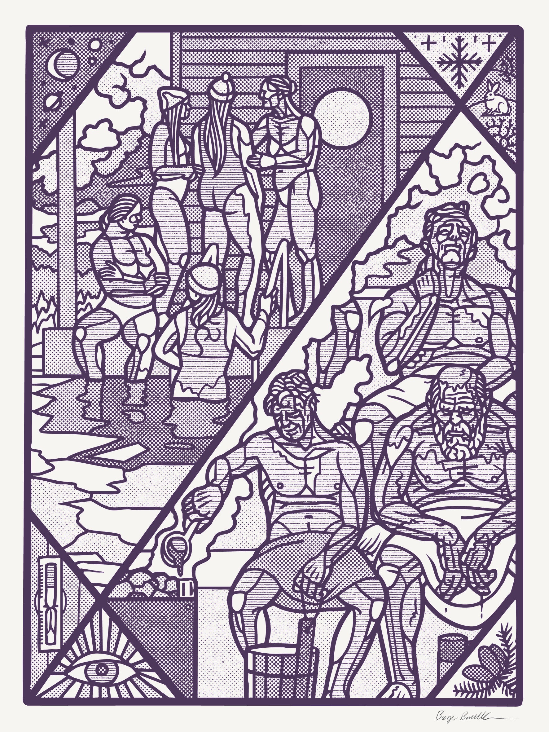 44x78 cm on 300g Hahnemuhle antique white (slight beige). No standard frame size. Screen printed by hand Edition of 40 in green or red. Signed and numbered