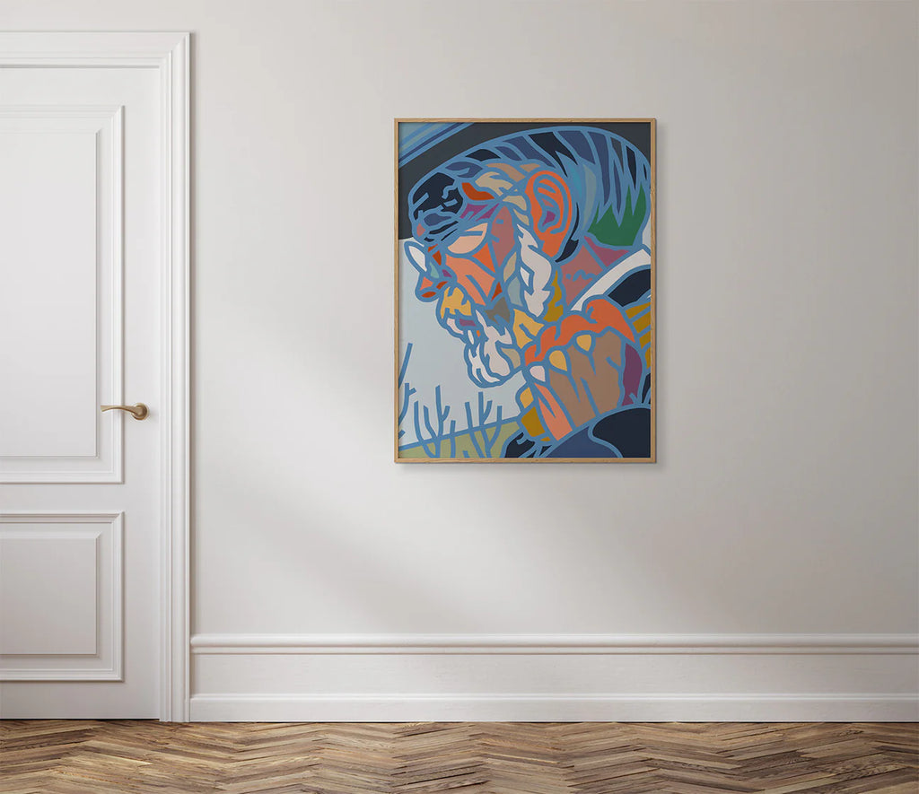 Stor vintage arbeider i farger. Bestiller du i fra Oslo og omegn kontakter vi deg ang custom ramme til denne fra ca 2500,-