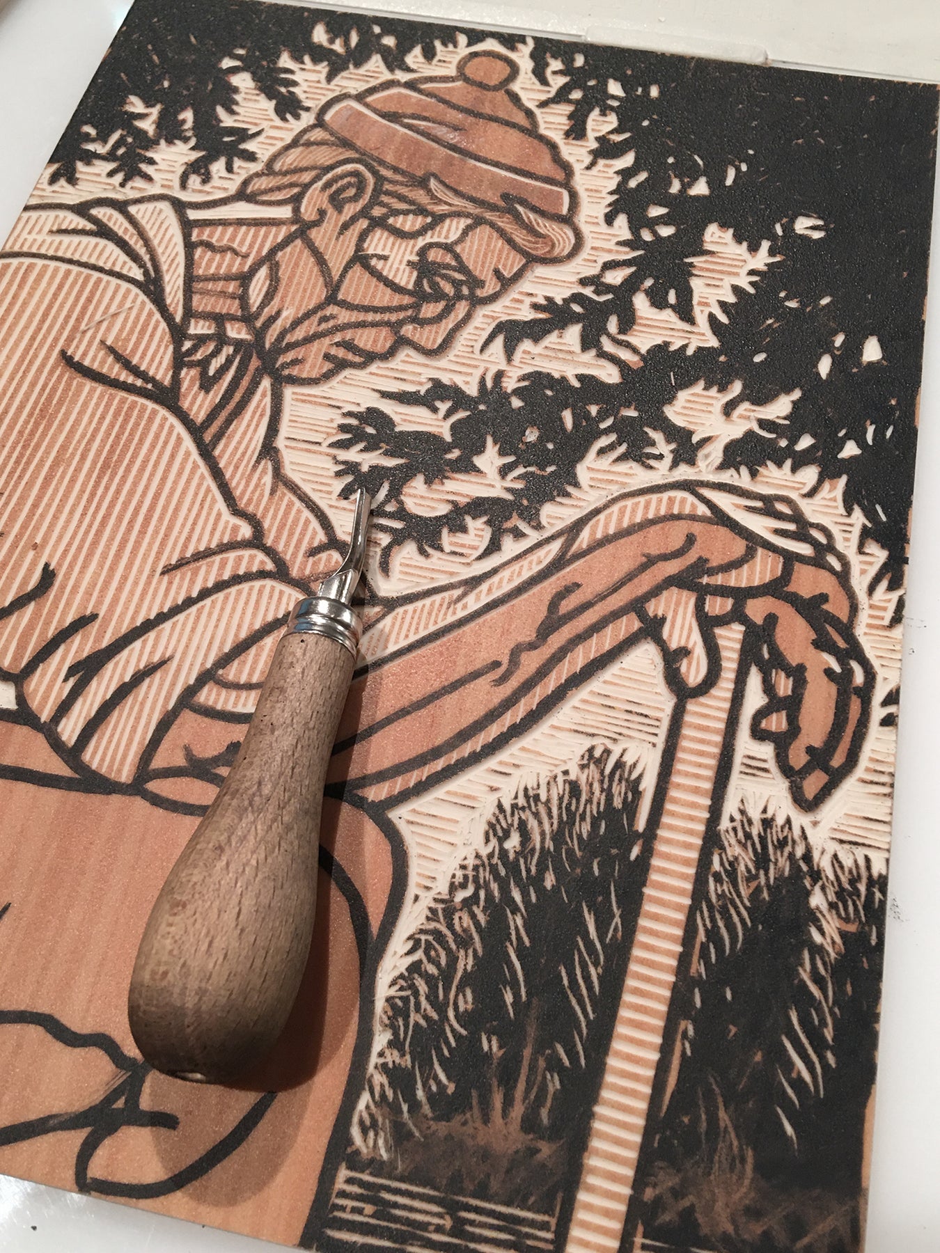 These prints are made using hand carved linoleum blocks.